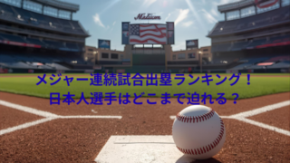 メジャーリーグの連続試合出塁記録について紹介します!そして、メジャーで活躍した日本人選手の連続試合出塁記録と現役の選手も含めてデータを記載します!(function(b,c,f,g,a,d,e){b.MoshimoAffiliateObje...