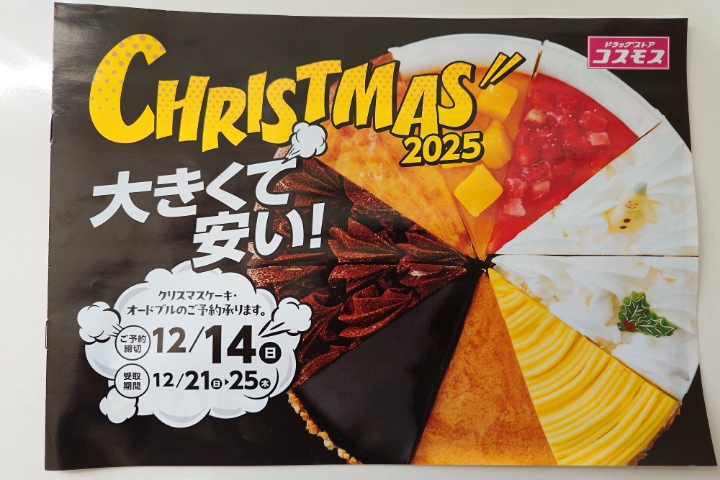 今回はドラッグストアコスモスのクリスマスケーキについて、紹介しました。