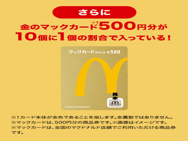 ⑤【金のマックカード500円分】